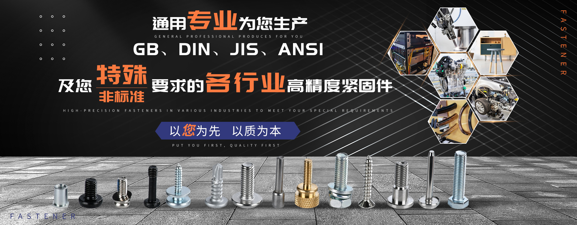 中山市通用螺絲制造有限公司成立于1987年,工廠坐落于廣東四小虎之一的中山市,北連廣州,毗鄰港澳。總占地面積14000m 2,足有兩個足球場。我司于1998年通過德國萊茵TUV ISO9002認證,于2002年通過TUV ISO9001:2000認證。2008年通過ISO 14000認證。我司主營自攻螺絲、組合螺絲、機械螺絲、防松螺絲等標準和非標準件,我司既可按客戶的要求提交所需的產(chǎn)品,也可以為客戶量身定做所需產(chǎn)品。我司擁有專業(yè)的產(chǎn)品檢測隊伍和投影分析儀、金相、硬度計(韋氏和洛氏)、扭矩力測試計等完善的檢測設(shè)備,為電子、電器、五金塑料、衛(wèi)浴、家具、機械、汽配等行業(yè)提供符合歐盟質(zhì)量、環(huán)保要求的產(chǎn)品。2006年,我司自主開發(fā)的ERP管理系統(tǒng),使我們的生產(chǎn)和服務(wù)效率得到了極大的提高。 經(jīng)過三十多年地摸爬滾打,依靠眾多新老顧客的支持,通用螺絲逐漸成長為國內(nèi)知名的緊固件供應(yīng)商。了解更多 >>